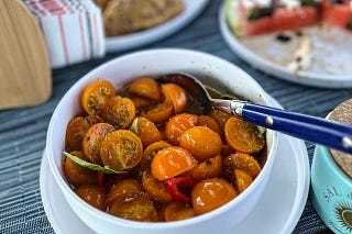 and a recipe for Sungold cherry tomatoes with fennel pollen, basil and chili