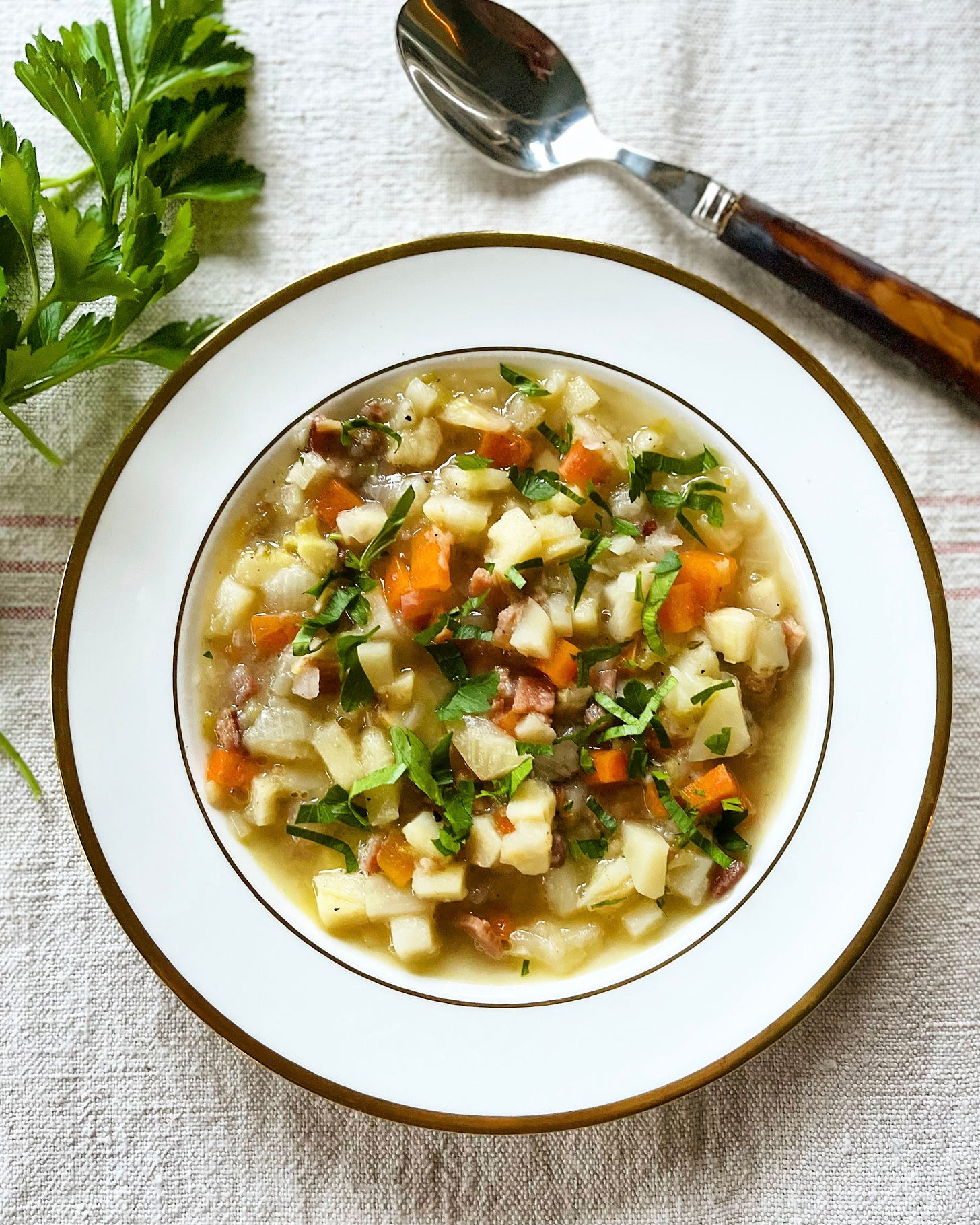 This simple winter soup, adapted from Sally Schneider, is full of root vegetables and aromatics. It can use up the odds and ends in your refrigerator, with infinite possibilities that can be dictated by what’s on hand and what you like most.
