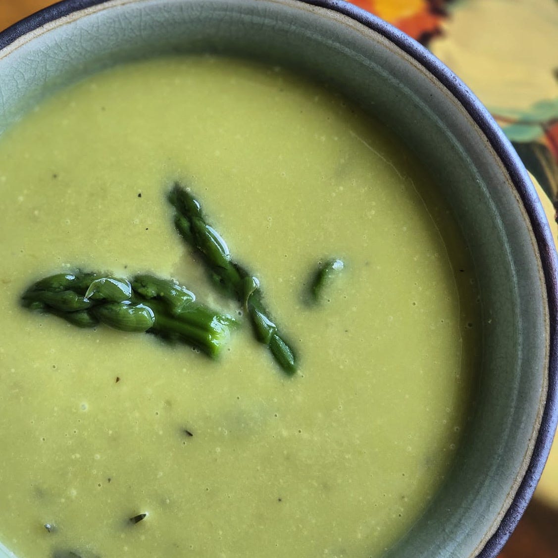 This simple and creamy asparagus soup has been a staple on our spring cooking rotation since it first appeared in the New York Times years ago. We make it every week while asparagus season is upon us, and freeze more for the deep gloom of short winter days.