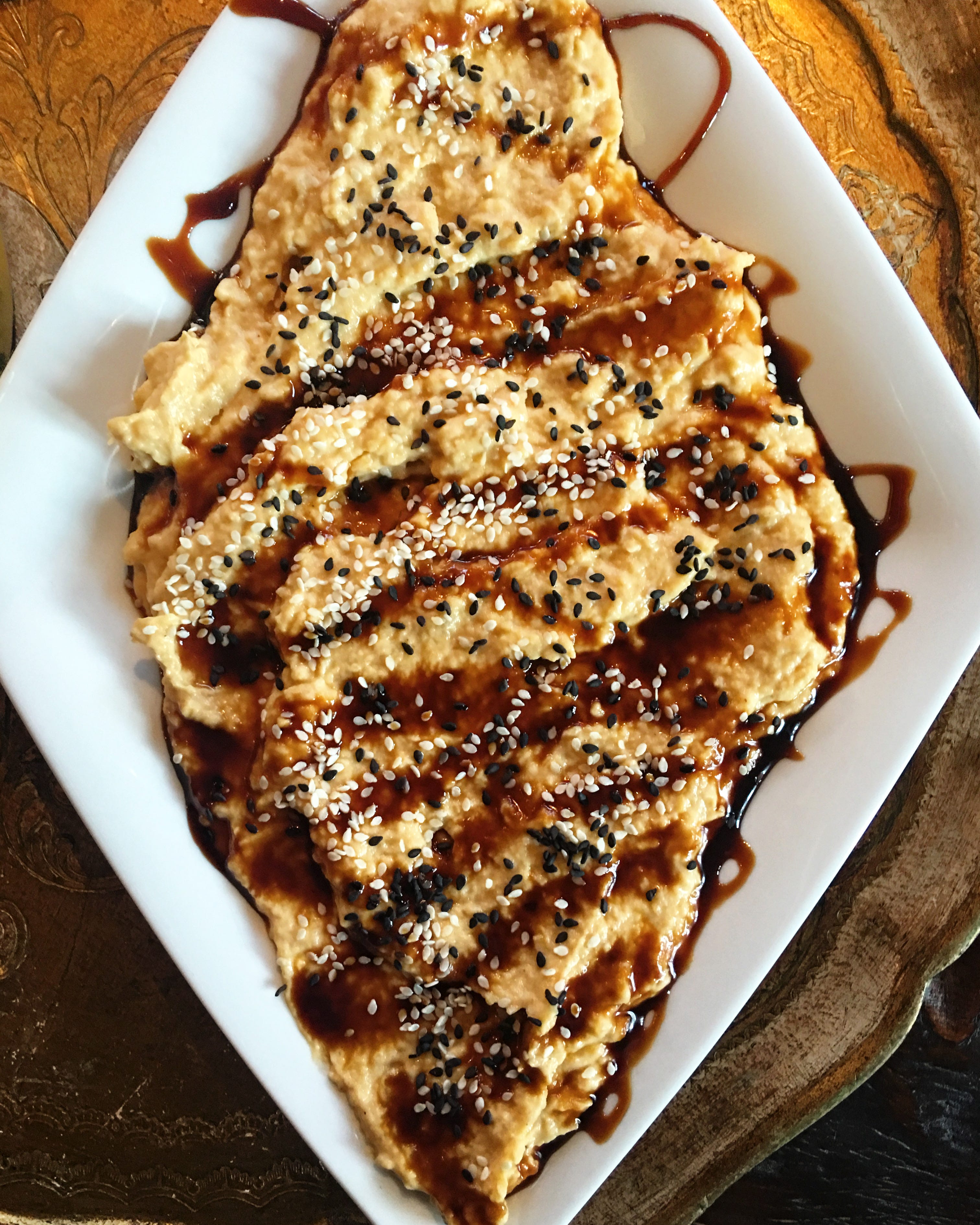 To serve, spread the butternut in a wavy pattern over a flat plate and sprinkle with sesame seeds and a drizzle of date syrup. Finish with the chopped coriander and serve with pita bread or crackers.