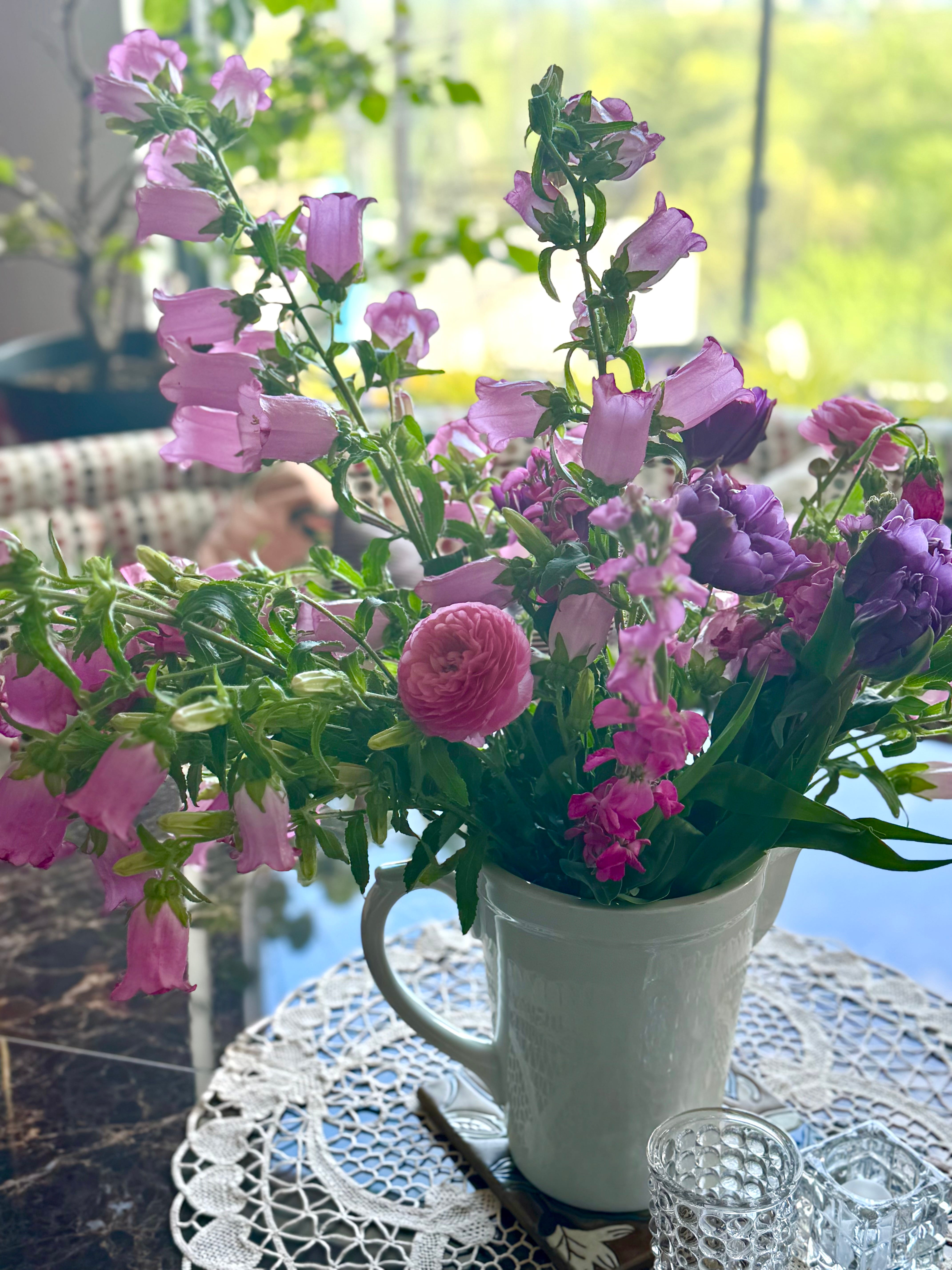 And now I know enough to buy a mandevilla for a season of happiness, and no more, and to say goodbye when the first frost comes. The bougainvillea has pride of place in our dining room, where it’s protected from the wind yet still is sun-kissed all day, giving back with an abundance of blooms every few weeks that leave me giddy with pink.