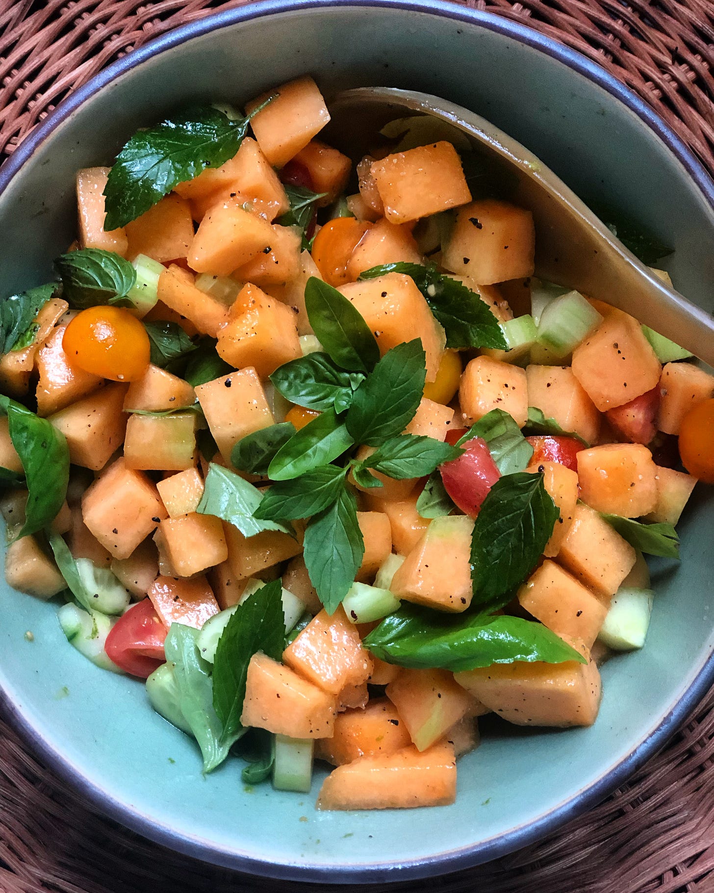 and a recipe for a satisfying and easy in-season melon, cucumber and cherry tomato salad