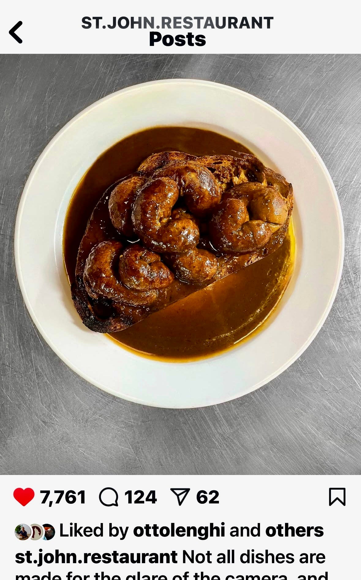 I first read this on an Instagram post describing a dish of devilled kidneys, “defiant in their glossy brownness, exultant in their deliciousness” from St. John Restaurant in London.