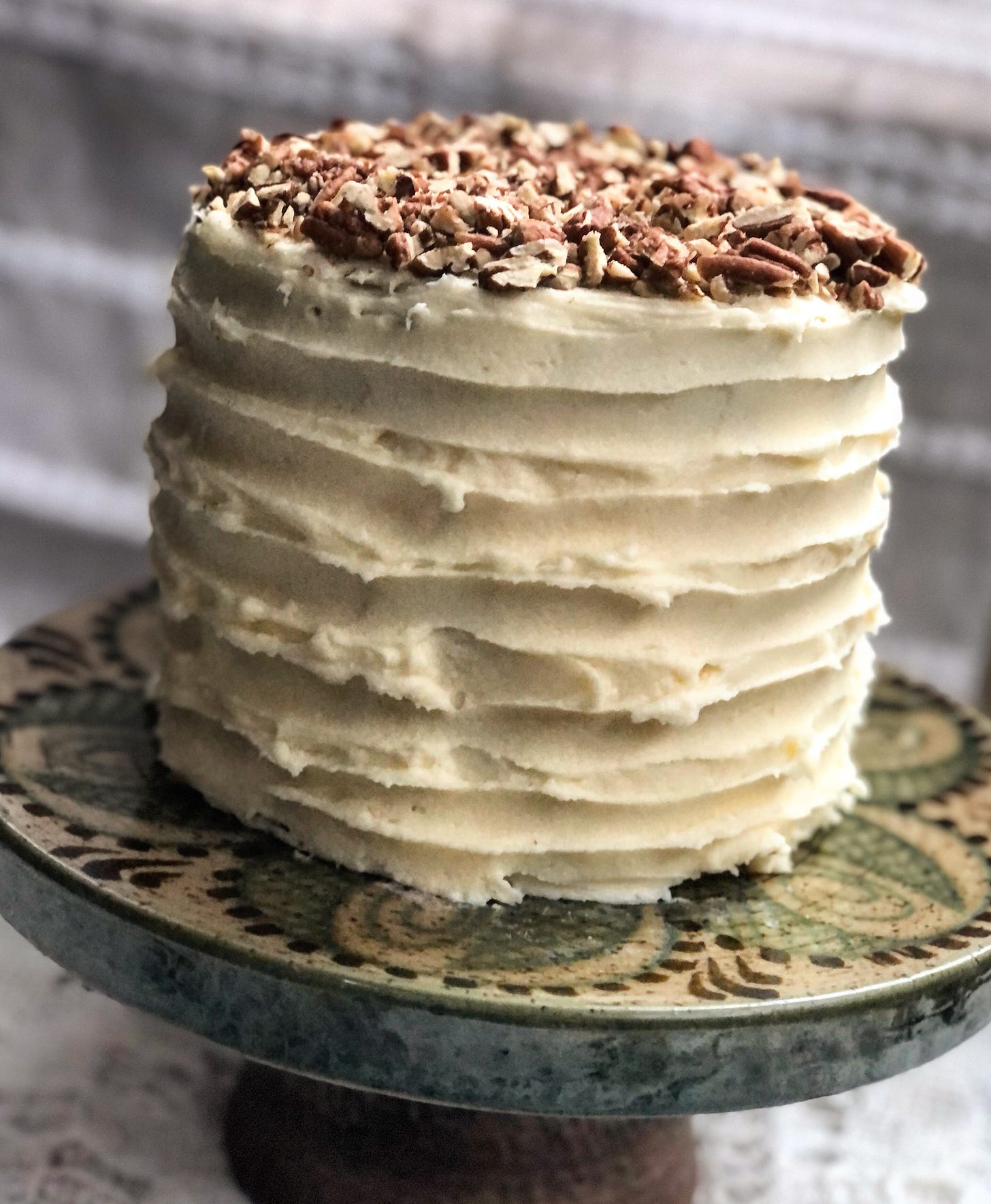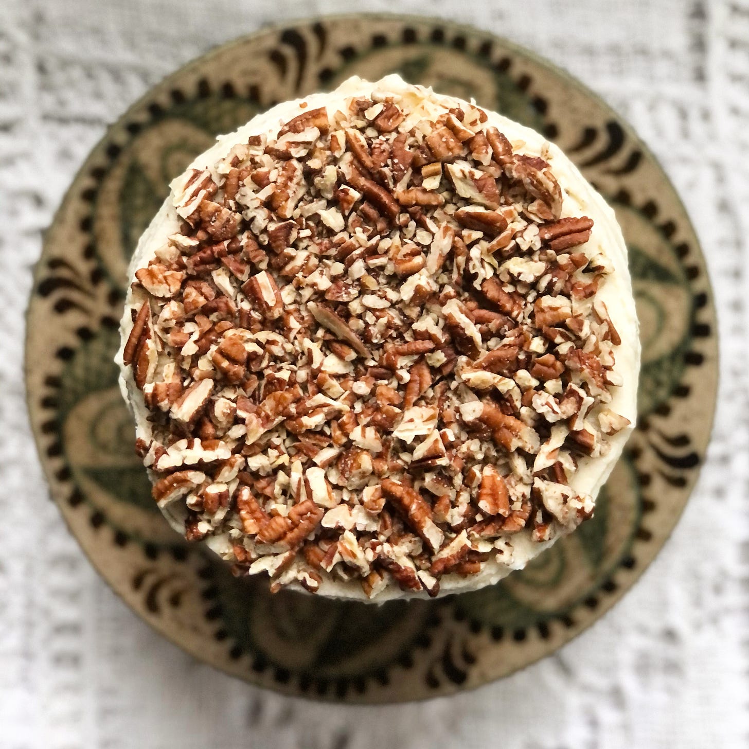 3/4 cup pecan halves, toasted (you can also finely chop the pecans for the cake topping, as I have done here)