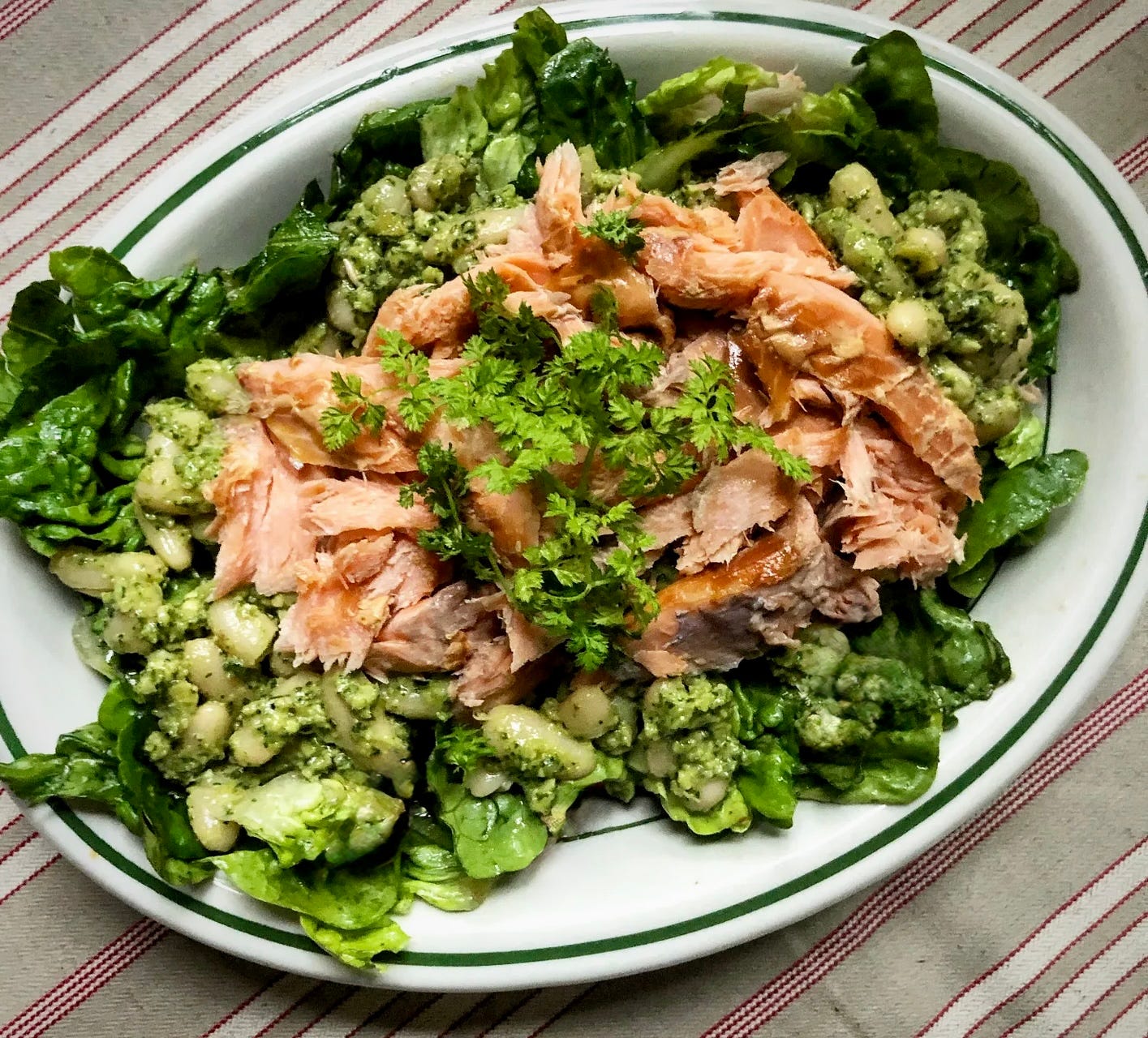 Smoked trout salad with pesto beans and greens