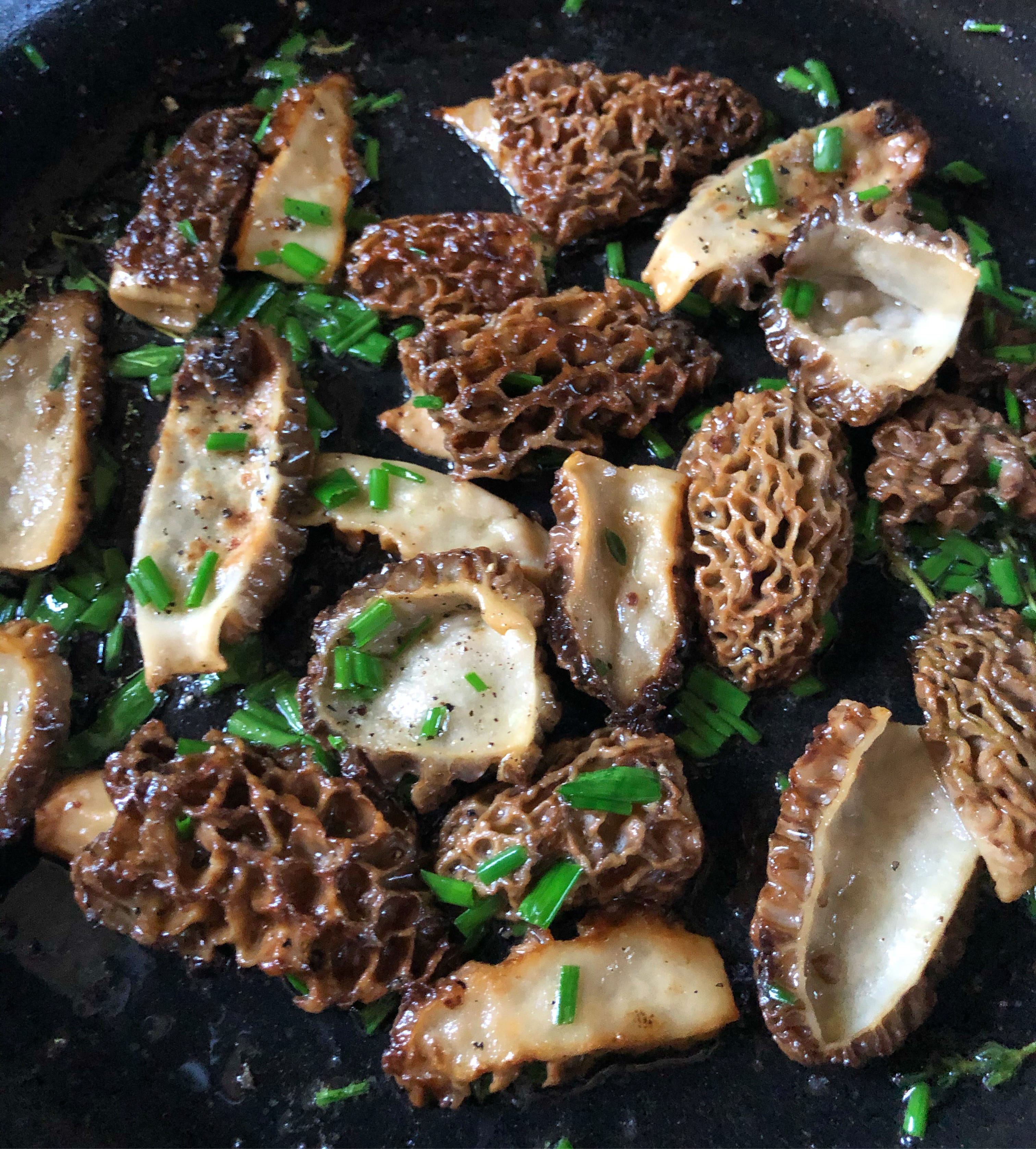 1 cup (65 gr) morel mushrooms, washed well, trimmed, dried and halved