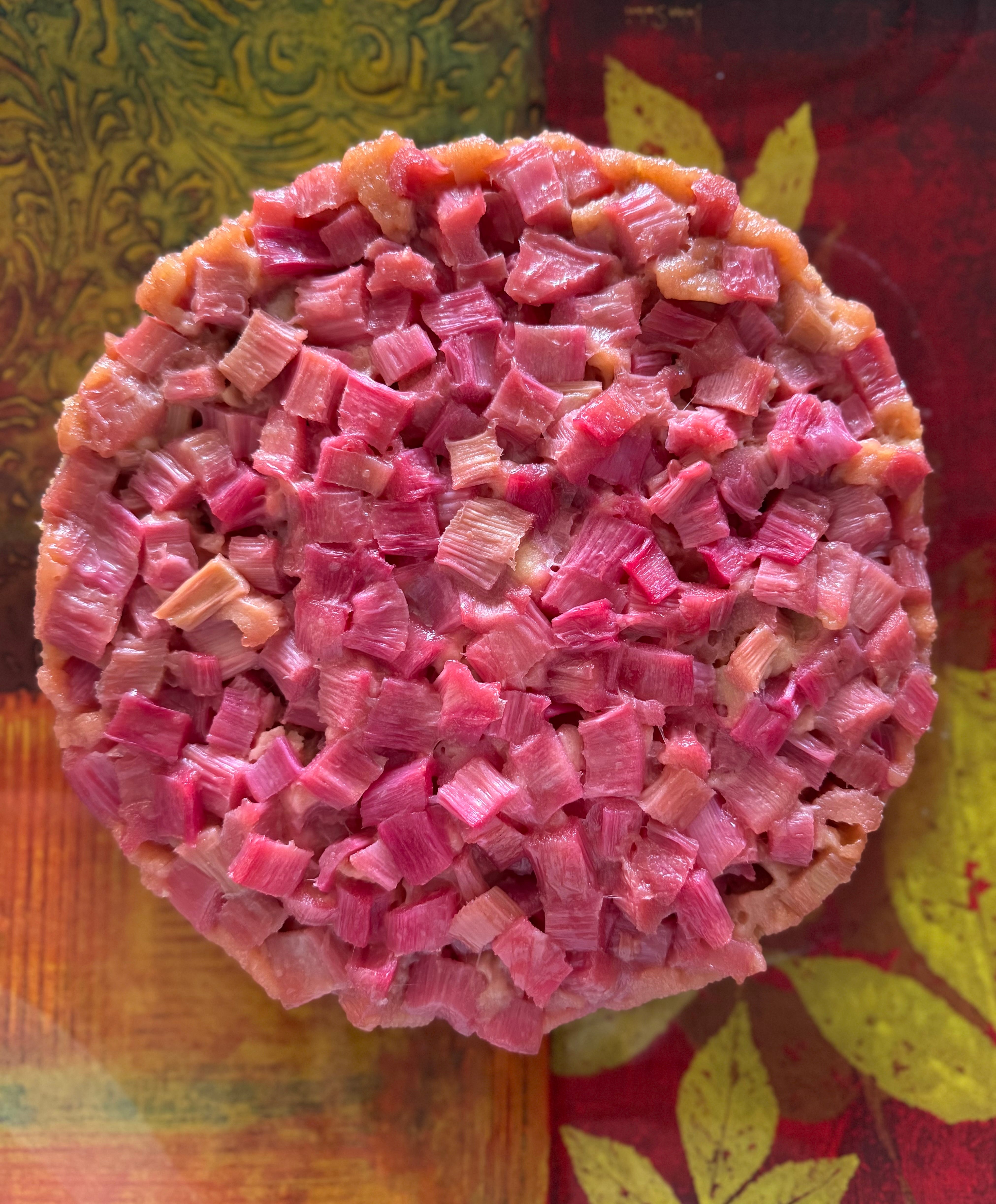 It was no accident that my first sighting of local forced rhubarb was on Thursday, the day of the spring equinox. These pale pink early stalks are delicate and retain their colour in a way that their sturdier siblings don’t later in the season. So of course, I made my go-to rhubarb dessert posthaste: this luscious and easy rhubarb upside-down cake.