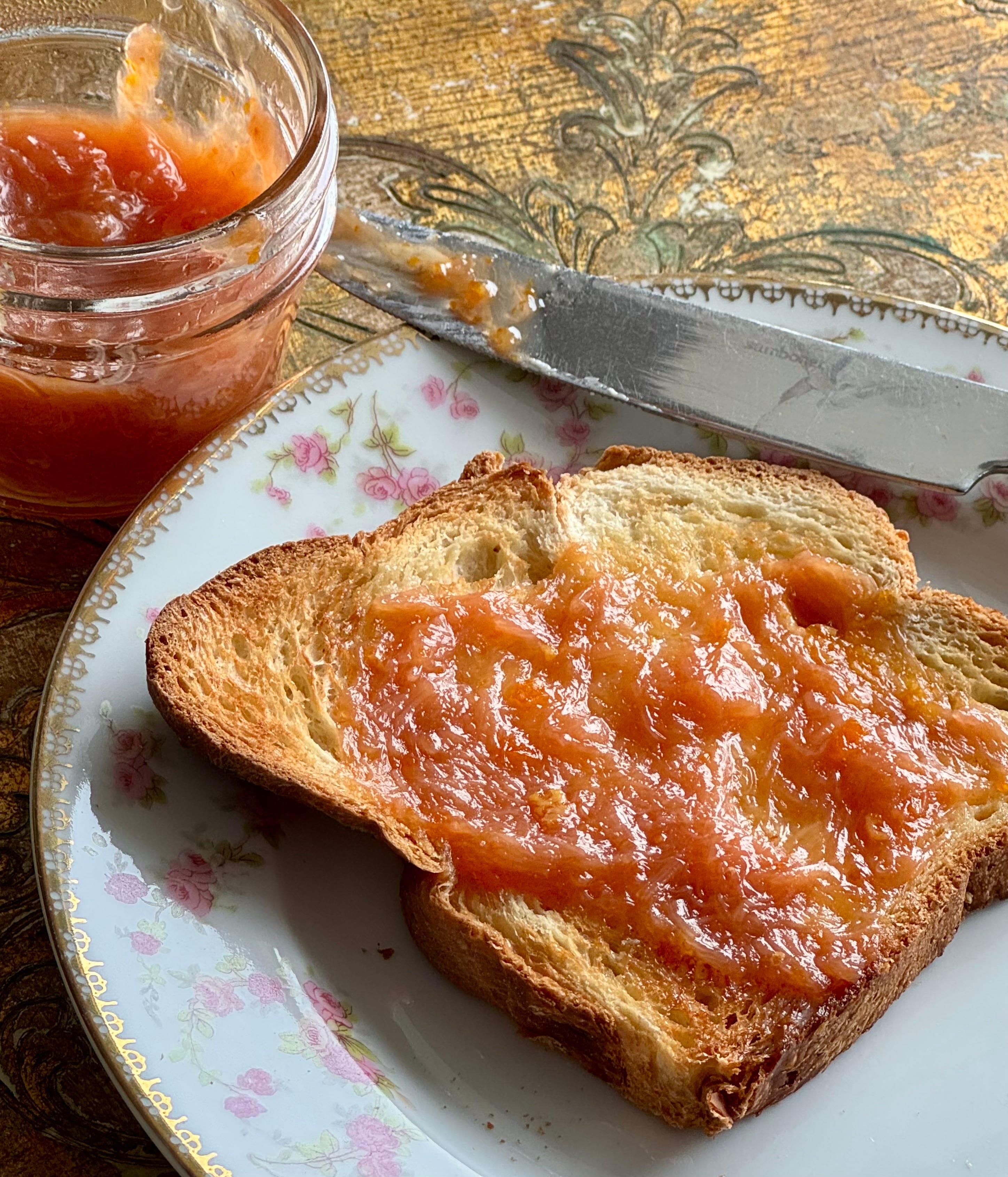 While this very small batch of rhubarb and blood orange jam may not seem worthwhile for the output, it can be scaled up easily. But even a small jar will be a welcome treat as the March winds blow and those shoots keep striving to see the sun.