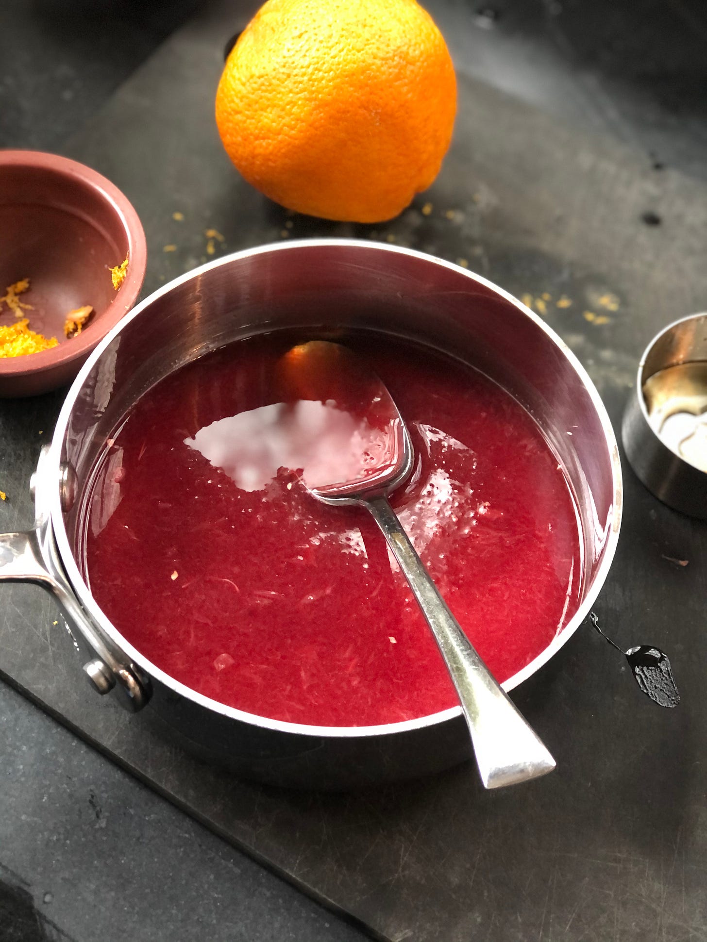 Boil the juice and sugar or honey together until reduced by half. Set aside.