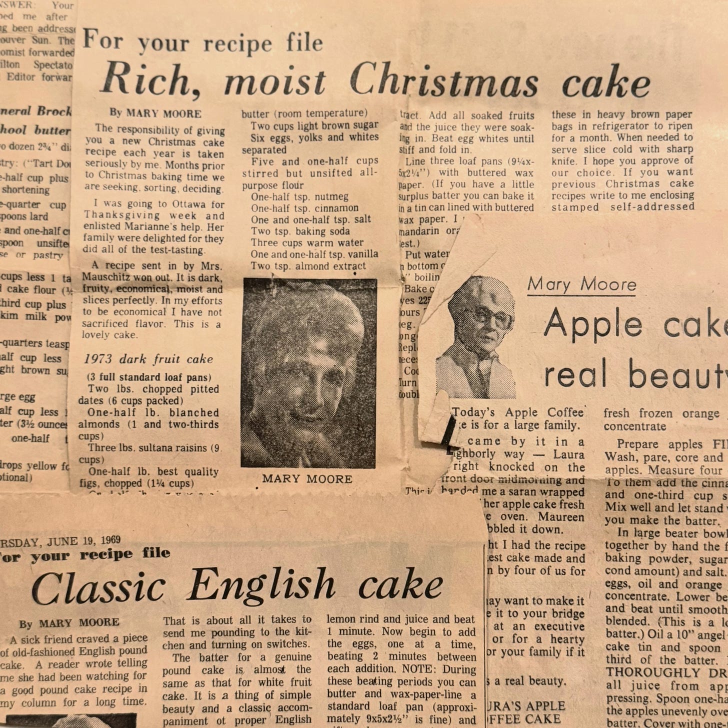 Yet she also embraced many of the newfound traditions and tastes of her adopted homeland. She read Moore’s daily columns in our local paper religiously, especially when sweet treats were on offer. While Hamburger Yum Yum and the Bacon Substitute went unclipped, my mother’s little yellow recipe box was stuffed full of carefully cut out baking recipes from Moore.